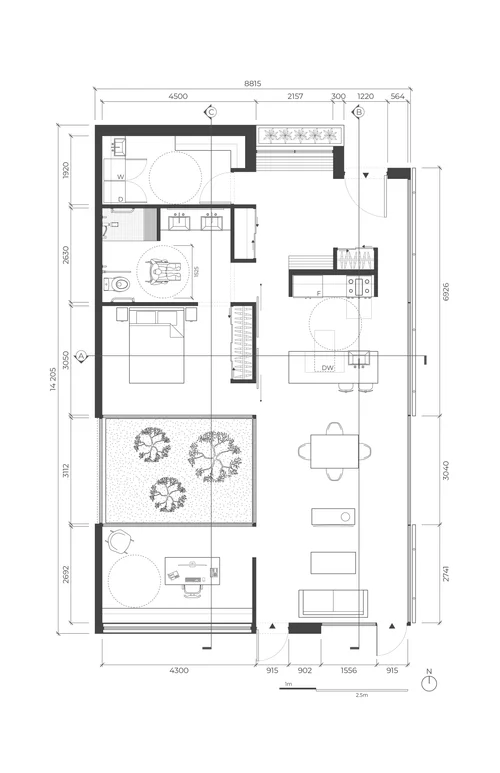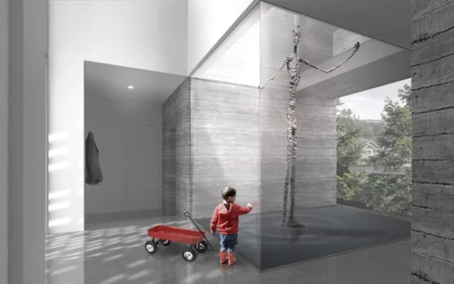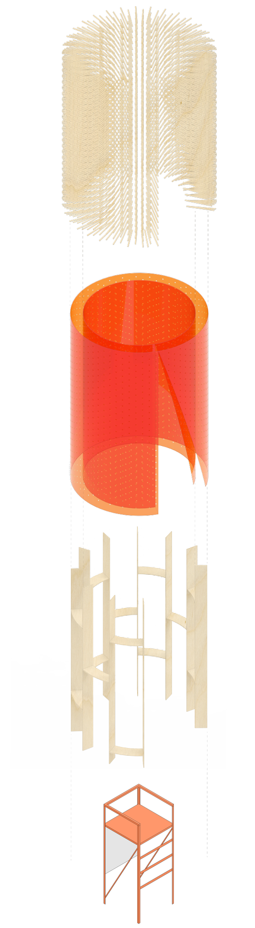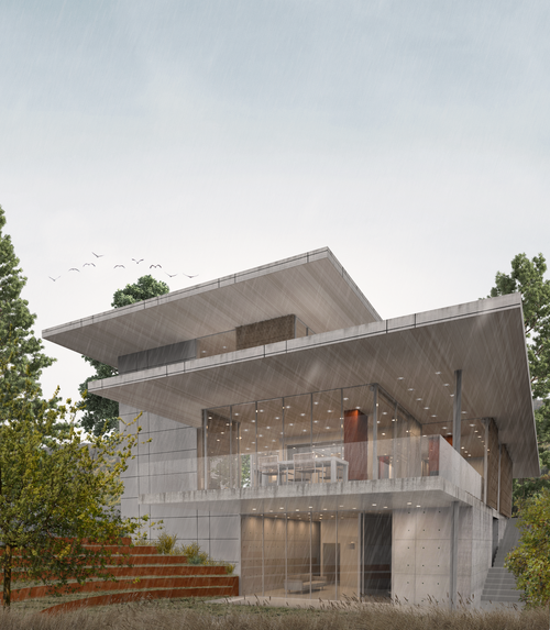 Embedded in the site as a physical and ephemeral extension of the landscape, the project offers a programmatic and perceptual gradient along the North-South axial trajectory that magnifies juxtapositions between public/private, prescription/fluidity, and opacity/transparency. User experience of place is fundamentally informed by the interface between these qualities. Intimate and spiritual programs to the South are spatially and perceptually separated from more active public programs to the North by a circulatory hierarchy which is reinforced by material and system applications promoting incremental daylight permeation and feelings of transparency before opening entirely to the Bow River at the Northern periphery of the site.