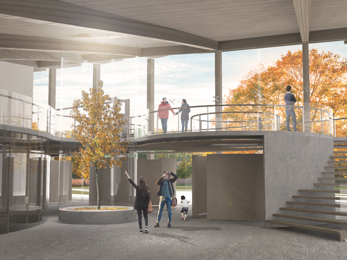 Earth, water, air and fire are deployed as a series of elemental ‘pods’ along the symbolic East-West axial trajectory to honour the elements of the Indigenous Medicine Wheel and the path of the sun. The interstitial space between these elements mediate entry and exit and serve as primary venues for informal and spontaneous interactions essential to strengthening community.